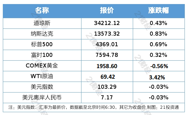 纽约股市三大股指13日上涨。其中,道指涨0.43%,标普指数涨0.69%,纳斯达克指数涨0.83%。