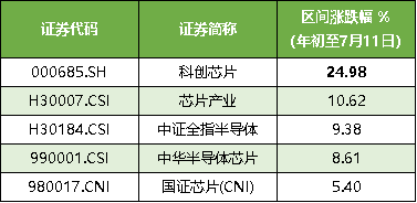 由于赛道热度高涨,资金方面,截至7月11日,科创芯片ETF(588200)年内获资金净流入达63.83亿元。