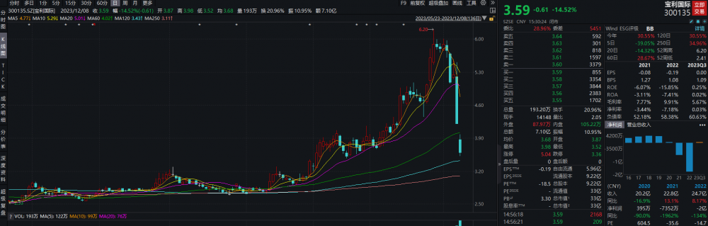 数据显示,宝利国际单周累计跌幅达到了35%以上,12月7日宝利国际直接跌停,跌幅20%,8日继续大跌14.52%。究其原因,宝利国际回应北京商报时表示,下跌系市场行为,公司并不知晓原因。