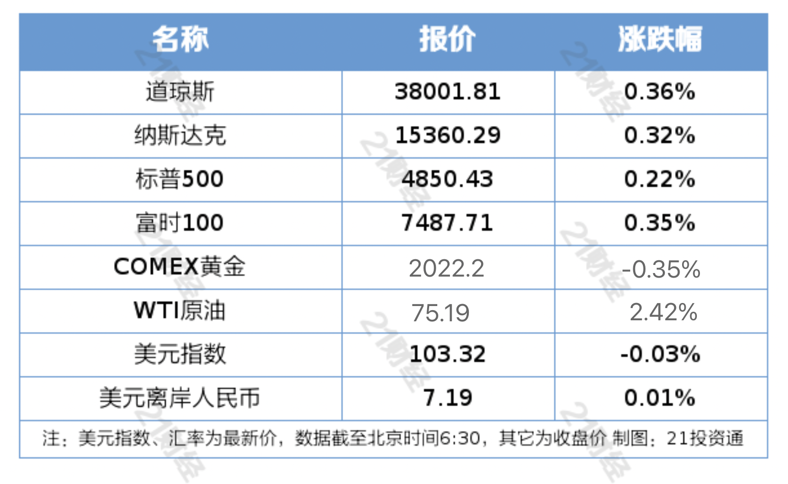 纽约股市三大股指22日上涨。截至当天收盘,道琼斯工业平均指数比前一交易日上涨138.01点,收于38001.81点,涨幅为0.36%;标准普尔500种股票指数上涨10.62点,收于4850.43点,涨幅为0.22%;纳斯达克综合指数上涨49.32点,收于15360.29点,涨幅为0.32%。