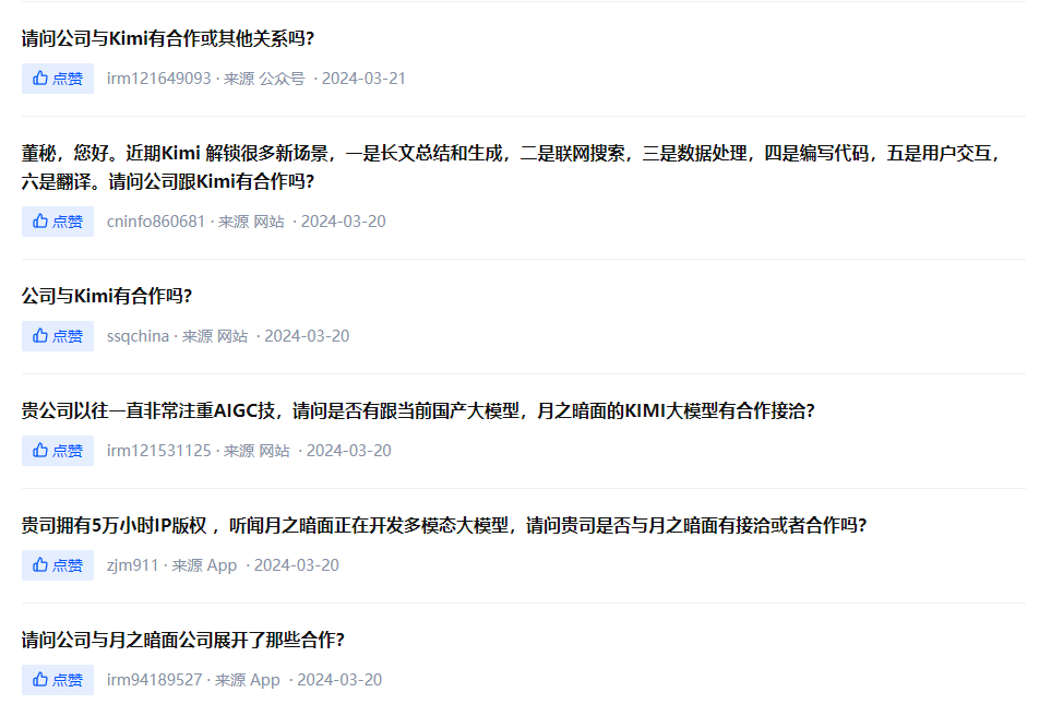 在Kimi引发的AI应用热潮之下,投资者密切关注华策与Kimi的合作等问题,但均未在互动平台得到回应。