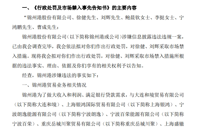 回溯到去年11月,因涉嫌信息披露违法违规,锦州港被证监会立案调查。时隔六个月后,证监会对锦州港的处罚“靴子落地”。