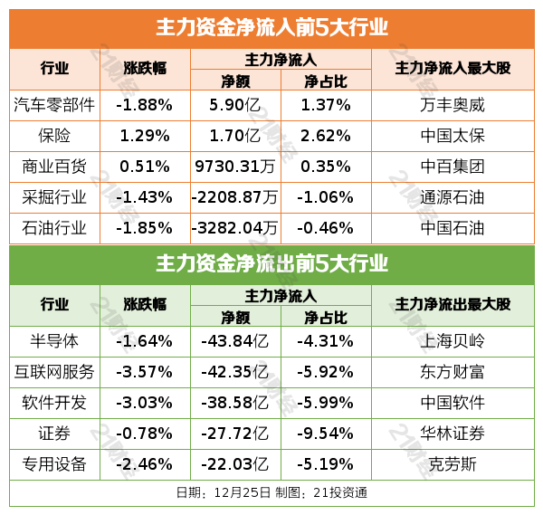 12月25日,市场全天震荡调整,大小指数再度分化,微盘股指数跌超3%。截至收盘,沪指跌0.01%,深成指跌0.64%,创业板指跌0.55%。沪深两市全天成交额1.28万亿元,较上个交易日缩量263亿,成交额创9月27日以来新低。