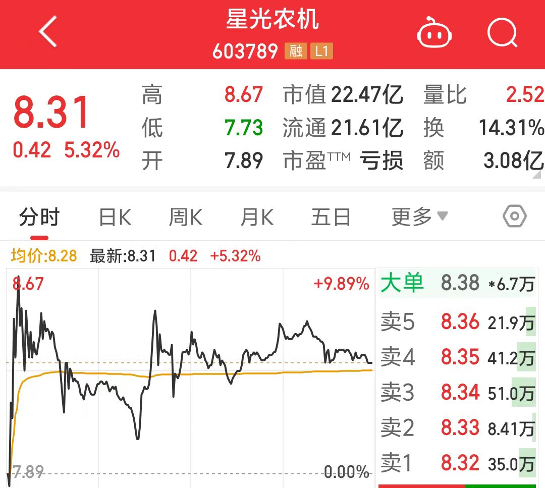 值得注意的是,星光农机股票于2月17日、2月18日连续两个交易日收盘价格累计涨幅达到21.68%,2月19日又大涨5.32%。据统计,该股自2月5日至今累计涨幅近40%。