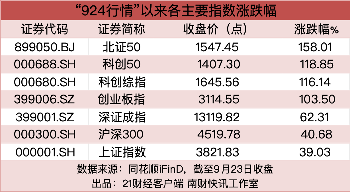 (原标题:“924”行情一周年,诞生1431只翻倍股,187股下跌)