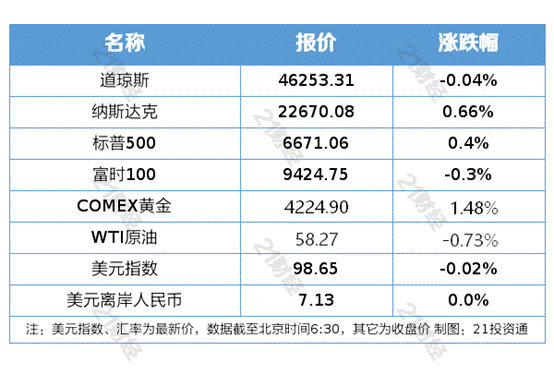 纽约股市三大股指10月15日涨跌不一。截至当天收盘,道琼斯工业平均指数比前一交易日下跌17.15点,收于46253.31点,跌幅为0.04%;标准普尔500种股票指数上涨26.75点,收于6671.06点,涨幅为0.40%;纳斯达克综合指数上涨148.38点,收于22670.08点,涨幅为0.66%。
