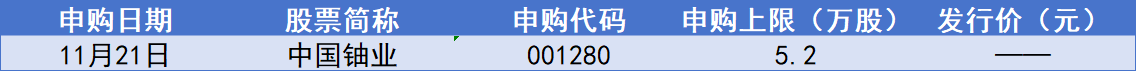 本周(11月17日至11月23日)沪深两市有1只新股申购,为中国铀业。