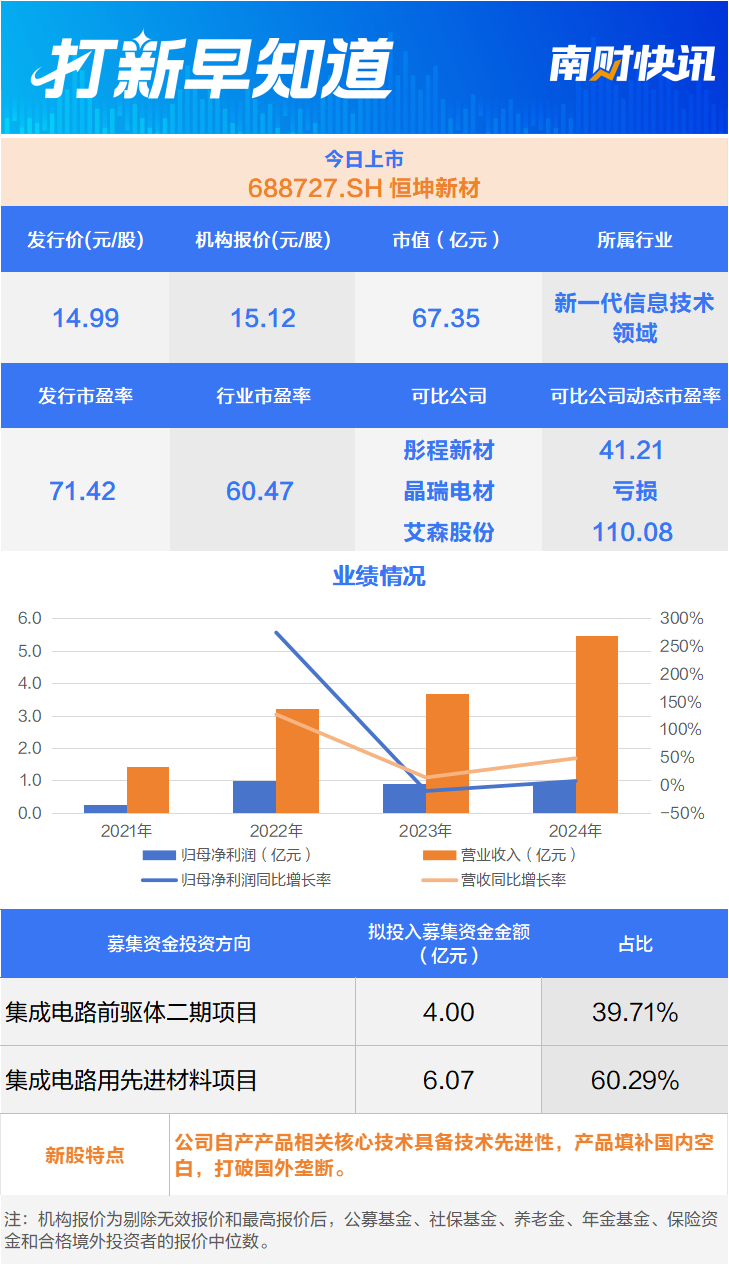 (原标题:国内冷链智能装备“小巨人”申购,3只新股上市丨打新早知道)