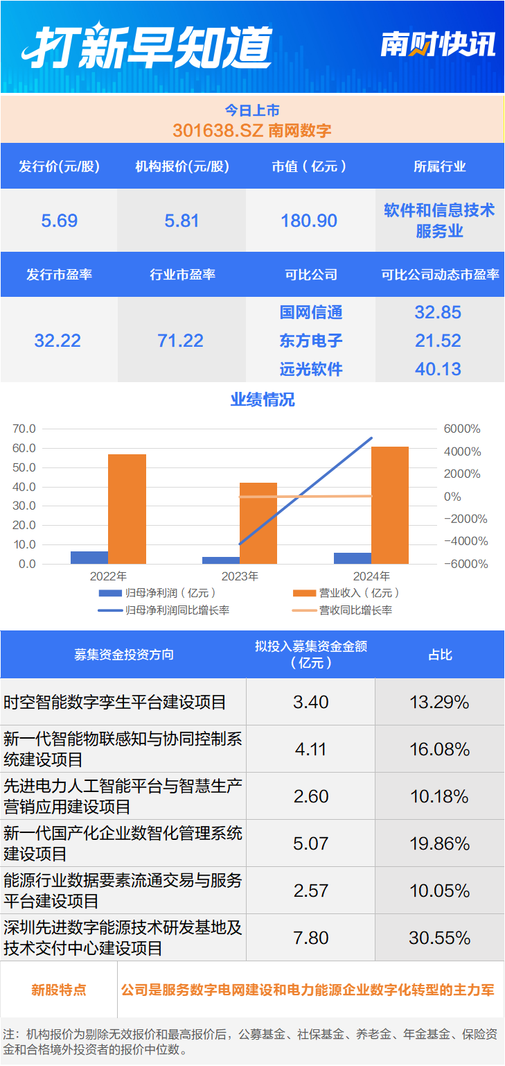 11月18日,有一只新股申购,为北交所的精创电气(920035.BJ);有三只新股上市,为创业板的南网数字(301638.SZ),科创板的恒坤新材(688727.SH),以及北交所的北矿检测(920160.BJ )。