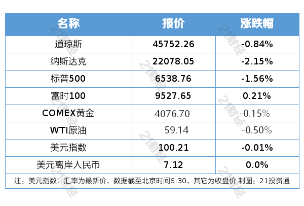 纽约股市三大股指11月20日下跌。截至当天收盘,道琼斯工业平均指数比前一交易日下跌386.51点,收于45752.26点,跌幅为0.84%;标准普尔500种股票指数下跌103.40点,收于6538.76点,跌幅为1.56%;纳斯达克综合指数下跌486.18点,收于22078.05点,跌幅为2.15%。
