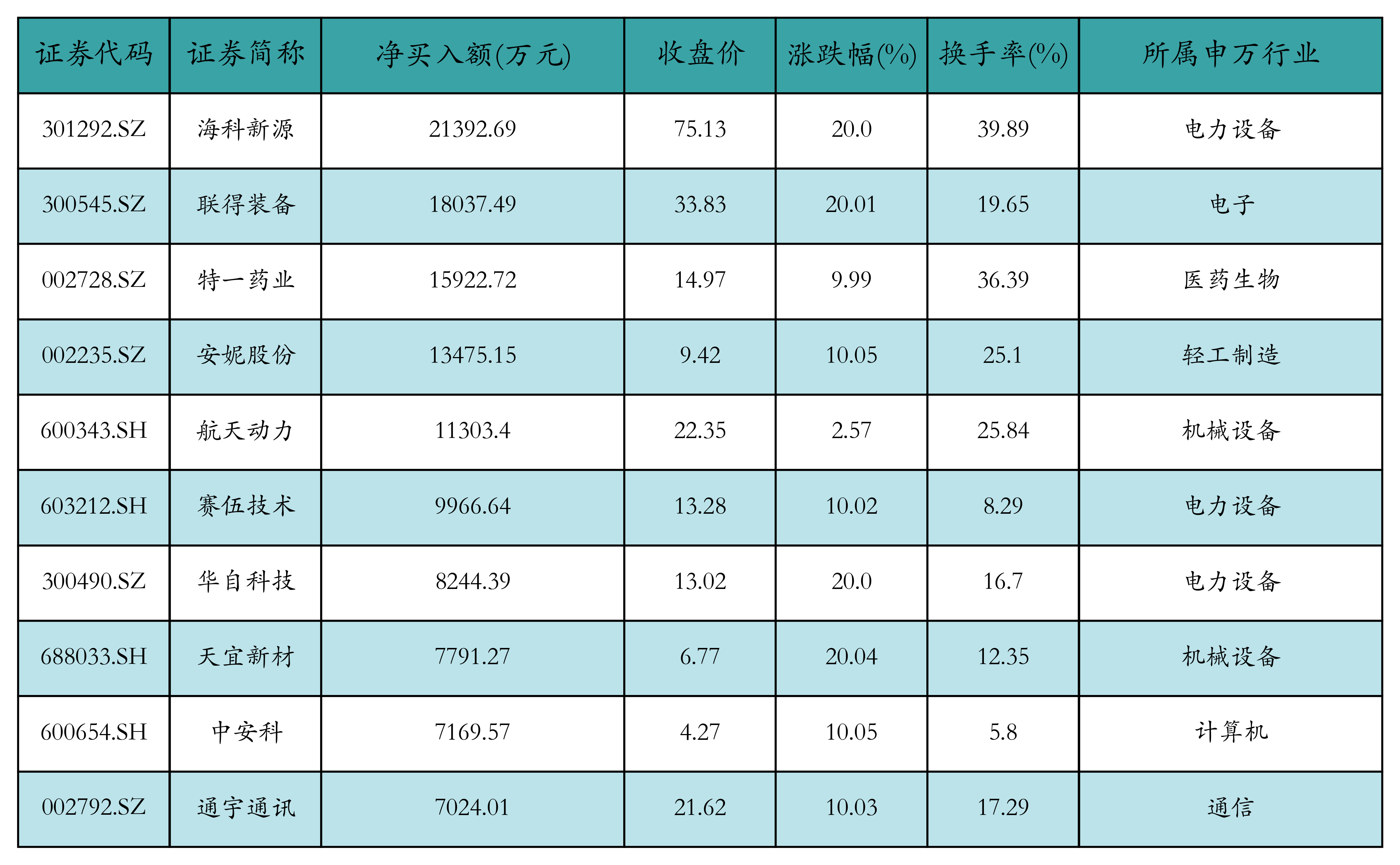 昨日龙虎榜营业部净买入额前10详情见下表: