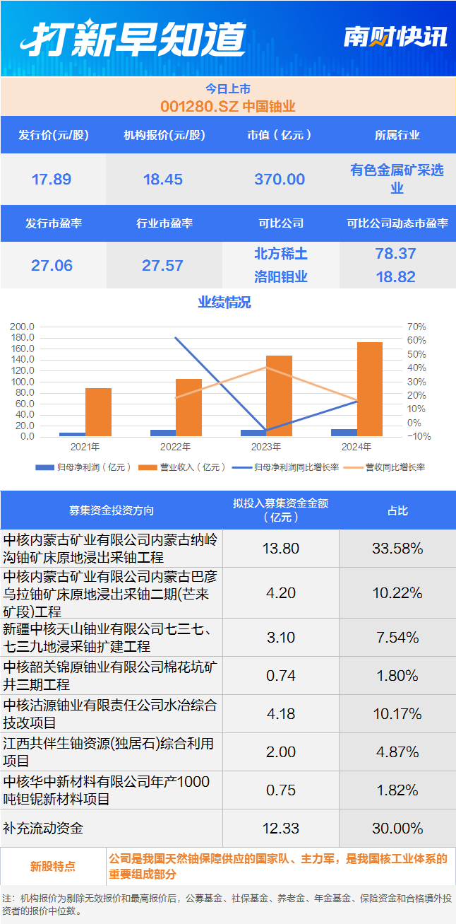 (原标题:年内第三大IPO,铀业第一股今日上市丨打新早知道)