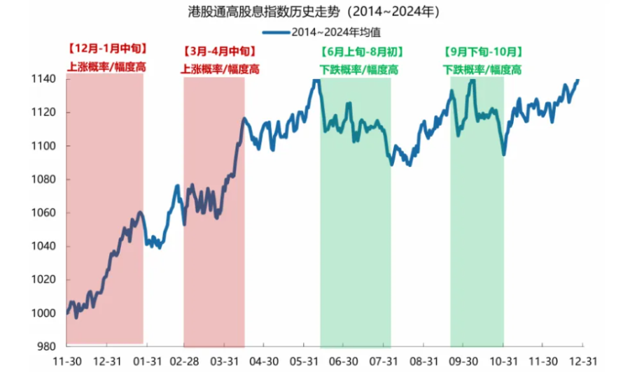 基于2014年以来的数据回溯,港股通高股息指数在岁末年初呈现以下特征: