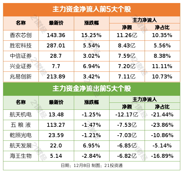 12月8日,市场高开高走,沪指涨0.54%,深成指涨1.39%,创业板指涨2.6%。沪深两市成交额2.04万亿,较上一个交易日放量3109亿,时隔20个交易日两市成交额再度突破2万亿元。盘面上,市场热点快速轮动,全市场超3400只个股上涨。板块方面,算力硬件、能源金属、福建等板块涨幅居前,煤炭、贵金属、油气等板块跌幅居前。