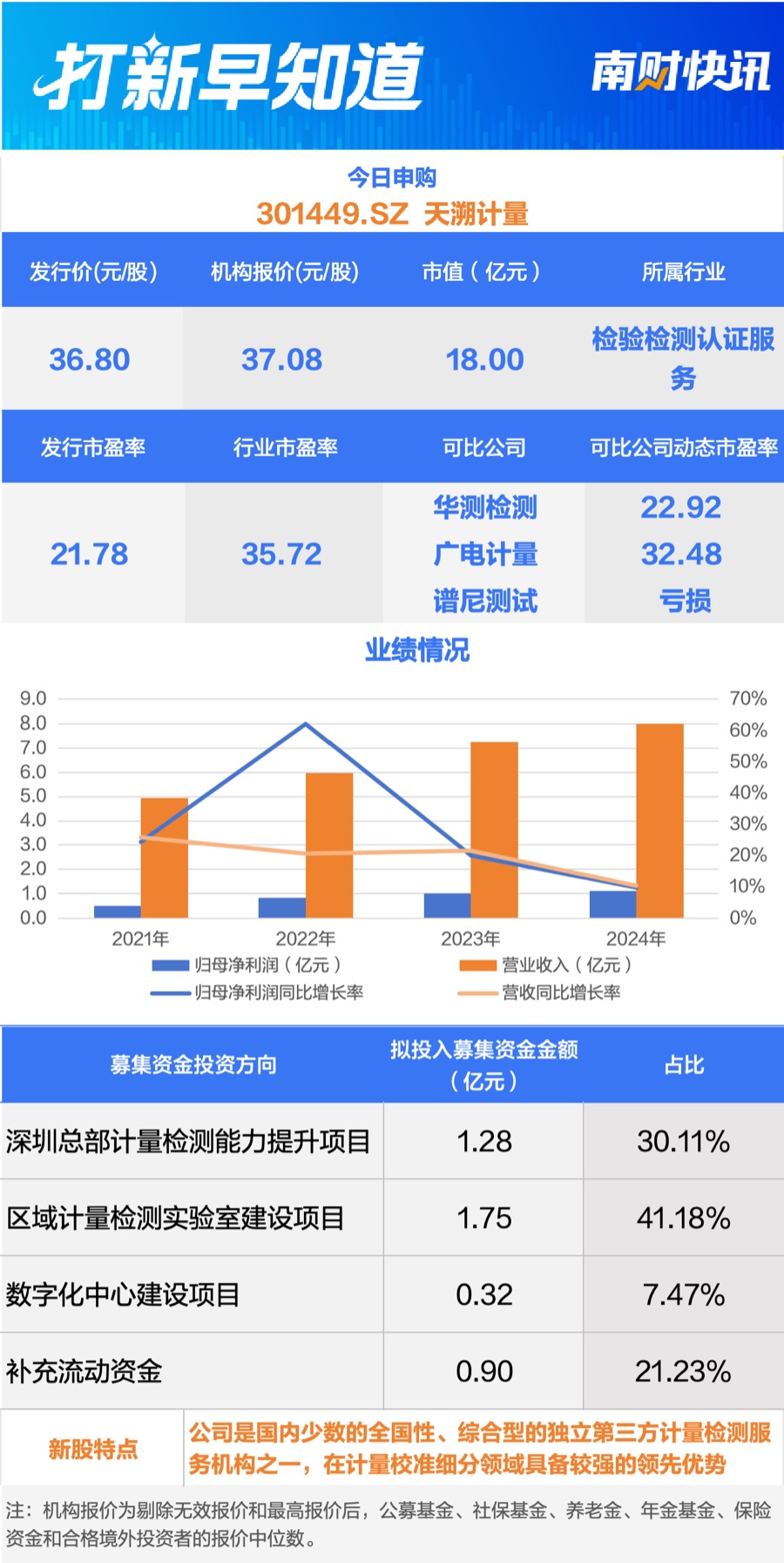 (原标题:全国性计量检测领军企业,风电设备部件龙头今日申购丨打新早知道)