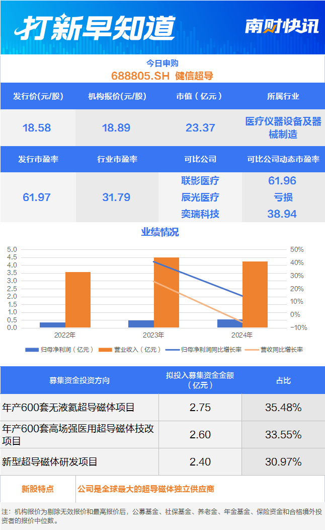 (原标题:全球最大超导磁体独立供应商今日申购丨打新早知道)