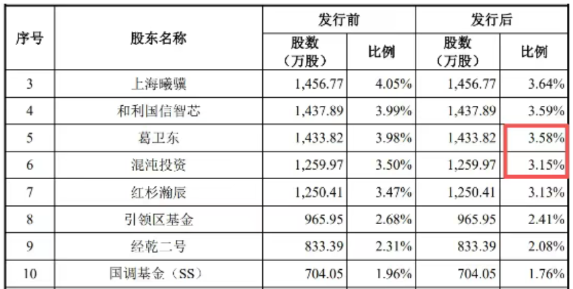 值得注意的是,私募大佬葛卫东及其实际控制的混沌投资合计持有2693.79万股,占沐曦股份发行后的6.73%,若按沐曦股份当日开盘价计算,持股市值超188亿元,而投入仅10多亿元。