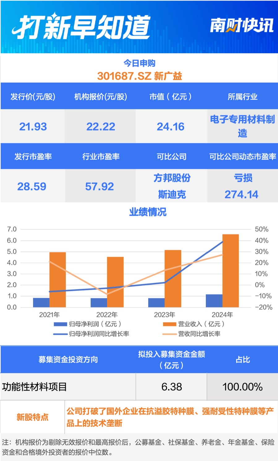 招股书显示,新广益成立于2004年,经过20年的发展,公司不仅陆续打破了欧美日韩企业在抗溢胶特种膜、强耐受性特种膜等产品上的技术垄断,而且成功发展成为相关产品全国市场占有率第一的厂商。