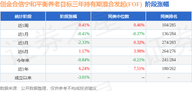 证券之星消息,日前创金合信宁和平衡养老目标三年持有期混合发起(FOF)基金公布三季报,2024年三季度最新规模0.22亿元,季度净值涨幅为4.11%。