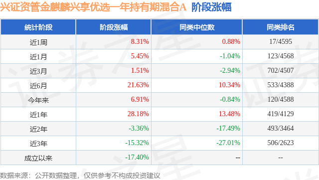 从业绩表现来看,兴证资管金麒麟兴享优选一年持有期混合A基金过去一年净值涨幅为28.18%,在同类基金中排名419/4129,同类基金过去一年净值涨幅中位数为13.48%。而基金过去一年的最大回撤为-17.76%,成立以来的最大回撤为-38.7%。