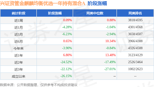 从业绩表现来看,兴证资管金麒麟均衡优选一年持有混合A基金过去一年净值涨幅为6.8%,在同类基金中排名3123/4129,同类基金过去一年净值涨幅中位数为13.48%。而基金过去一年的最大回撤为-15.26%,成立以来的最大回撤为-34.4%。
