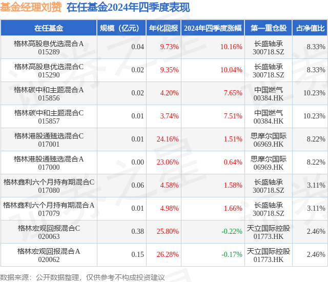 证券之星消息,日前格林碳中和主题混合C基金公布四季报,2024年四季度最新规模0.01亿元,季度净值涨幅为7.51%。