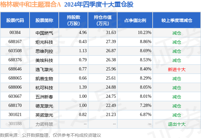 证券之星消息,日前格林碳中和主题混合A基金公布四季报,2024年四季度最新规模0.02亿元,季度净值涨幅为7.65%。