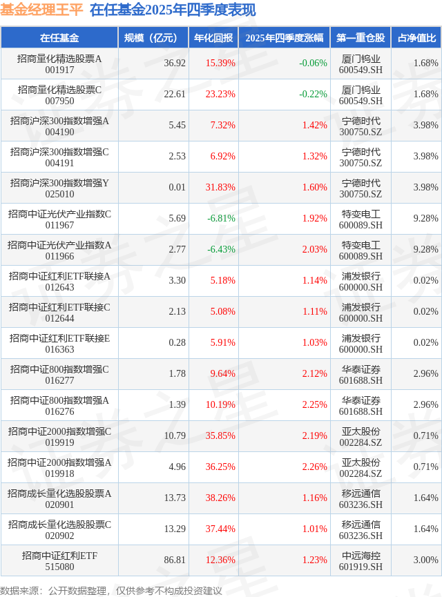 证券之星消息,日前招商中证红利ETF基金公布四季报,2025年四季度最新规模86.81亿元,季度净值涨幅为1.23%。