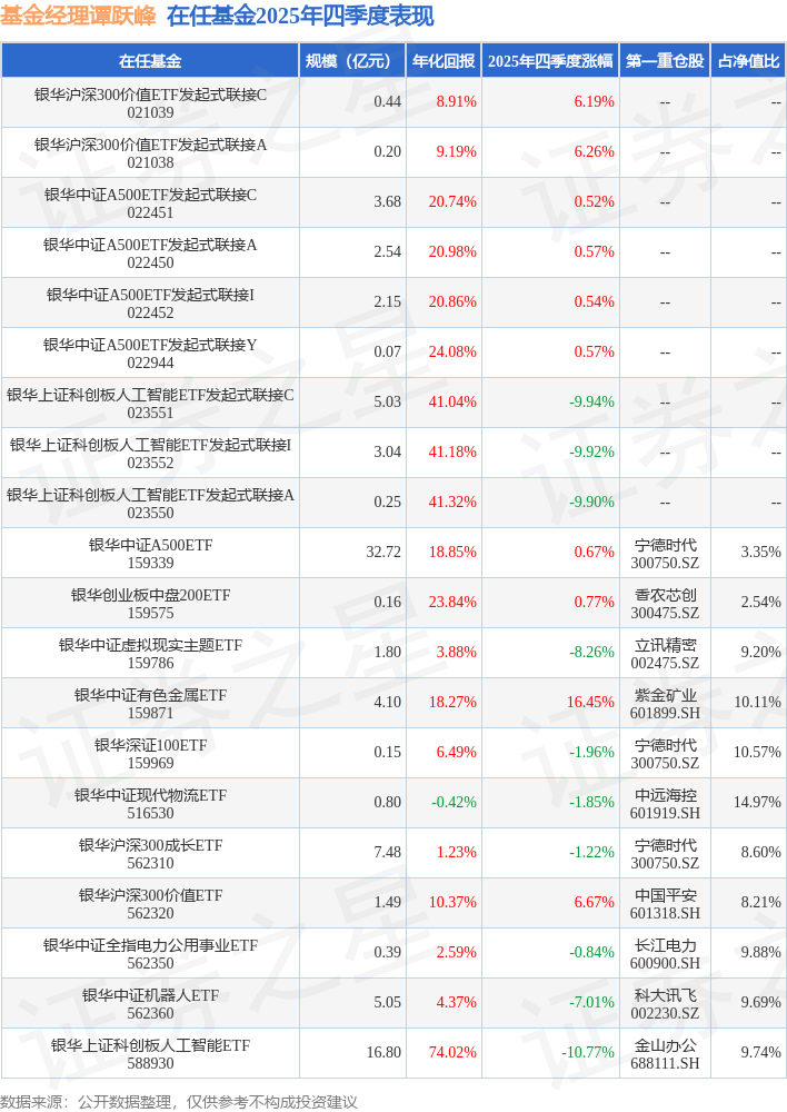 银华中证现代物流ETF现任基金经理为谭跃峰。其中在任基金经理谭跃峰已从业4年又25天,2024年1月9日正式接手管理银华中证现代物流ETF,任职期间累计回报为30.3%。目前还管理着20只基金产品(包括A类和C类),其中本季度表现最佳的基金为银华中证有色金属ETF(159871),季度净值涨幅为16.45%。