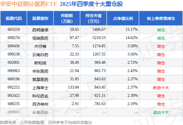 证券之星消息,日前华安中证细分医药ETF基金公布四季报,2025年四季度最新规模3.56亿元,季度净值涨幅为-12.54%。