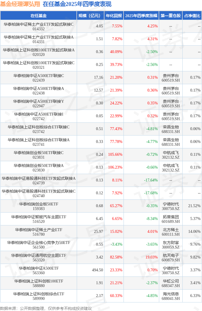 华泰柏瑞中证稀土产业ETF现任基金经理为谭弘翔。其中在任基金经理谭弘翔已从业4年又319天,2021年3月10日正式接手管理华泰柏瑞中证稀土产业ETF,任职期间累计回报为115.71%。目前还管理着22只基金产品(包括A类和C类),其中本季度表现最佳的基金为华泰柏瑞中证通用航空主题ETF(563320),季度净值涨幅为19.03%。
