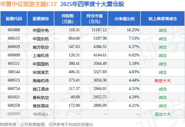 证券之星消息,日前华夏中证旅游主题ETF基金公布四季报,2025年四季度最新规模6.89亿元,季度净值涨幅为12.63%。