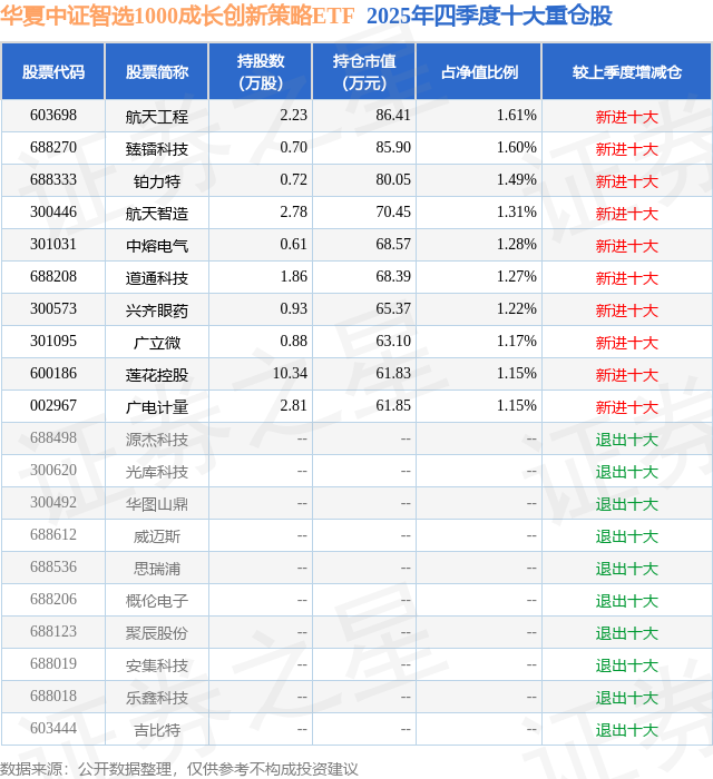 证券之星消息,日前华夏中证智选1000成长创新策略ETF基金公布四季报,2025年四季度最新规模0.54亿元,季度净值涨幅为0.11%。