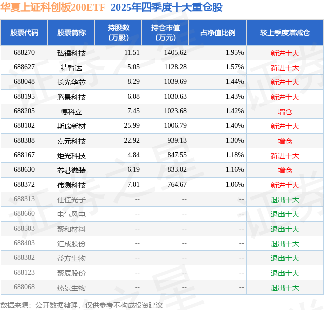 证券之星消息,日前华夏上证科创板200ETF基金公布四季报,2025年四季度最新规模7.2亿元,季度净值涨幅为0.32%。