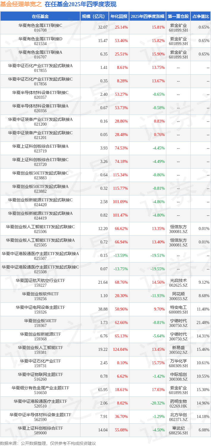 华夏中证电网设备主题ETF现任基金经理为单宽之。其中在任基金经理单宽之已从业1年又226天,2024年8月29日正式接手管理华夏中证电网设备主题ETF,任职期间累计回报为75.22%。目前还管理着31只基金产品(包括A类和C类),其中本季度表现最佳的基金为华夏细分有色金属产业主题ETF(516650),季度净值涨幅为17.03%。