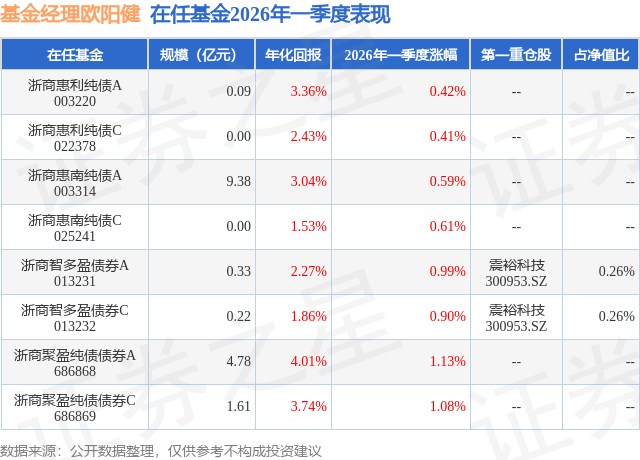 证券之星消息,日前浙商智多盈债券C基金公布一季报,2026年一季度最新规模0.22亿元,季度净值涨幅为0.9%。
