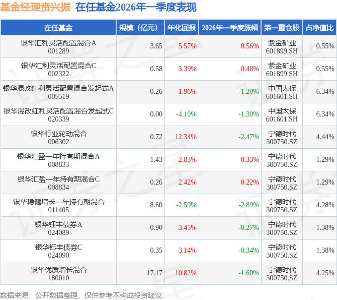 证券之星消息,日前银华混改红利灵活配置混合发起式C基金公布一季报,2026年一季度最新规模0.0亿元,季度净值涨幅为-1.3%。