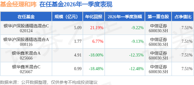 证券之星消息,日前银华沪深股通精选混合C基金公布一季报,2026年一季度最新规模5.09亿元,季度净值涨幅为-9.22%。
