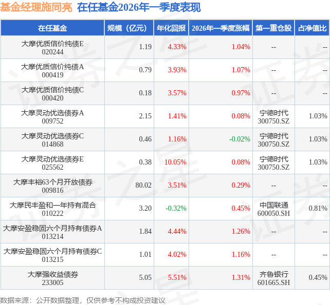 证券之星消息,日前大摩民丰盈和一年持有混合基金公布一季报,2026年一季度最新规模3.2亿元,季度净值涨幅为0.45%。
