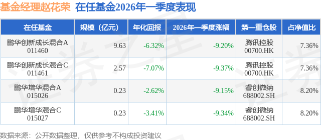 证券之星消息,日前鹏华增华混合C基金公布一季报,2026年一季度最新规模0.23亿元,季度净值涨幅为-9.34%。