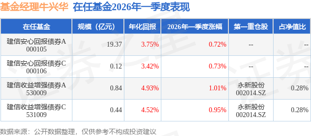 证券之星消息,日前建信收益增强债券C基金公布一季报,2026年一季度最新规模0.44亿元,季度净值涨幅为0.95%。