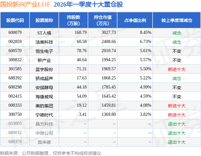 证券之星消息,日前国投新兴产业LOF基金公布一季报,2026年一季度最新规模3.57亿元,季度净值涨幅为1.43%。