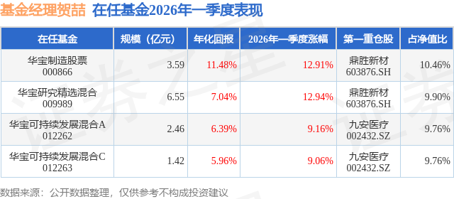 证券之星消息,日前华宝制造股票基金公布一季报,2026年一季度最新规模3.59亿元,季度净值涨幅为12.91%。