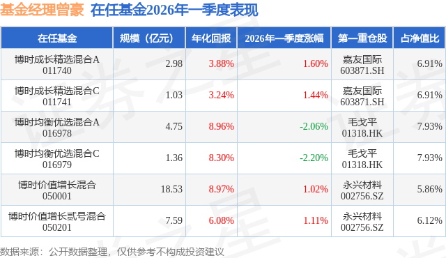 证券之星消息,日前博时成长精选混合A基金公布一季报,2026年一季度最新规模2.98亿元,季度净值涨幅为1.6%。