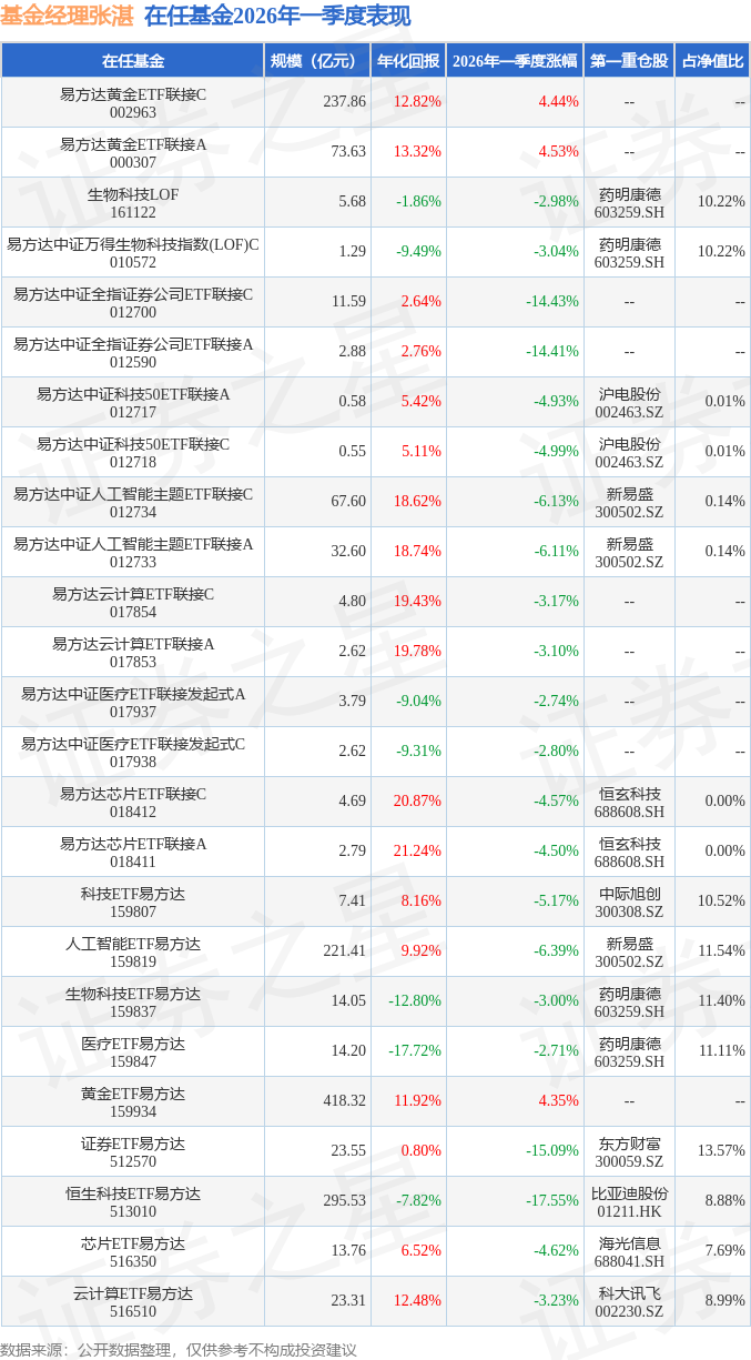 证券之星消息,日前云计算ETF易方达基金公布一季报,2026年一季度最新规模23.31亿元,季度净值涨幅为-3.23%。
