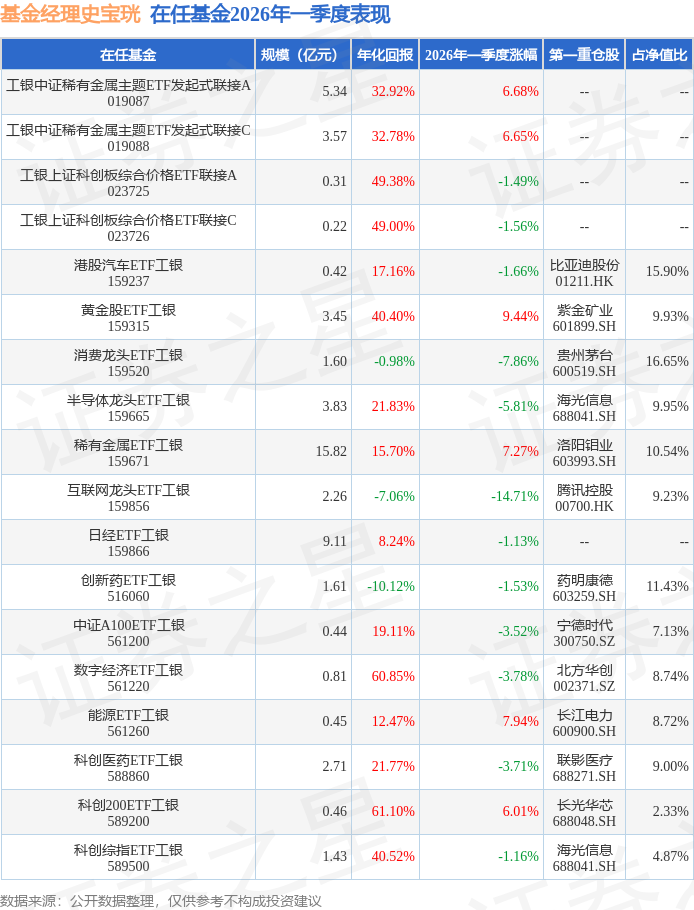 证券之星消息,日前互联网龙头ETF工银基金公布一季报,2026年一季度最新规模2.26亿元,季度净值涨幅为-14.71%。
