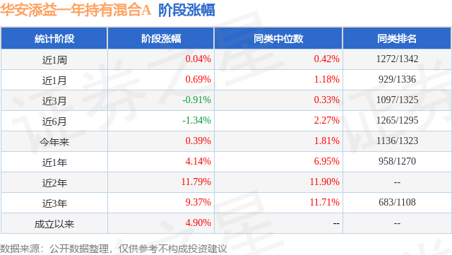 从业绩表现来看,华安添益一年持有混合A基金过去一年净值涨幅为4.14%,在同类基金中排名958/1270,同类基金过去一年净值涨幅中位数为6.95%。而基金过去一年的最大回撤为-3.22%,成立以来的最大回撤为-10.89%。
