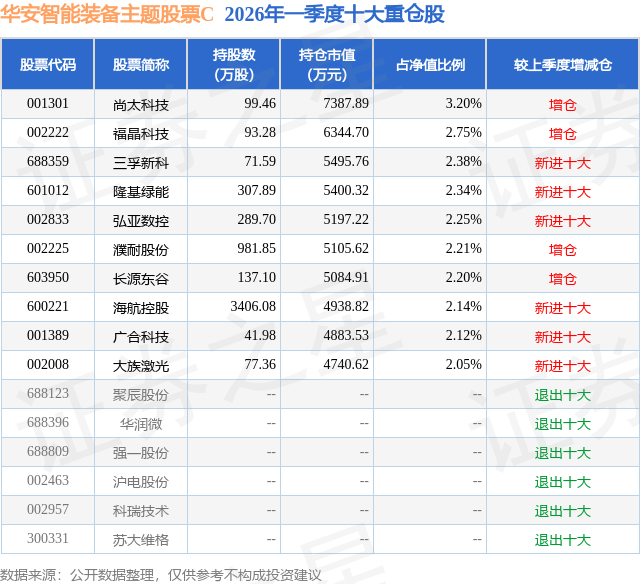 证券之星消息,日前华安智能装备主题股票C基金公布一季报,2026年一季度最新规模7.19亿元,季度净值涨幅为6.41%。