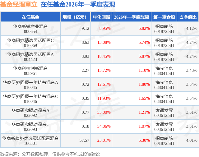 华商科技创新混合现任基金经理为童立。其中在任基金经理童立已从业10年又13天,2020年3月6日正式接手管理华商科技创新混合,任职期间累计回报为144.65%。目前还管理着9只基金产品(包括A类和C类),其中本季度表现最佳的基金为华商研究精选灵活配置A(004423),季度净值涨幅为5.87%。