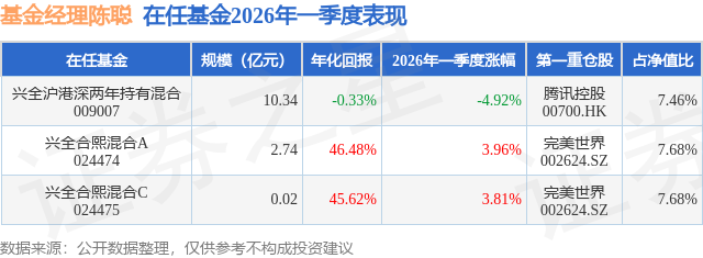 证券之星消息,日前兴全沪港深两年持有混合基金公布一季报,2026年一季度最新规模10.34亿元,季度净值涨幅为-4.92%。